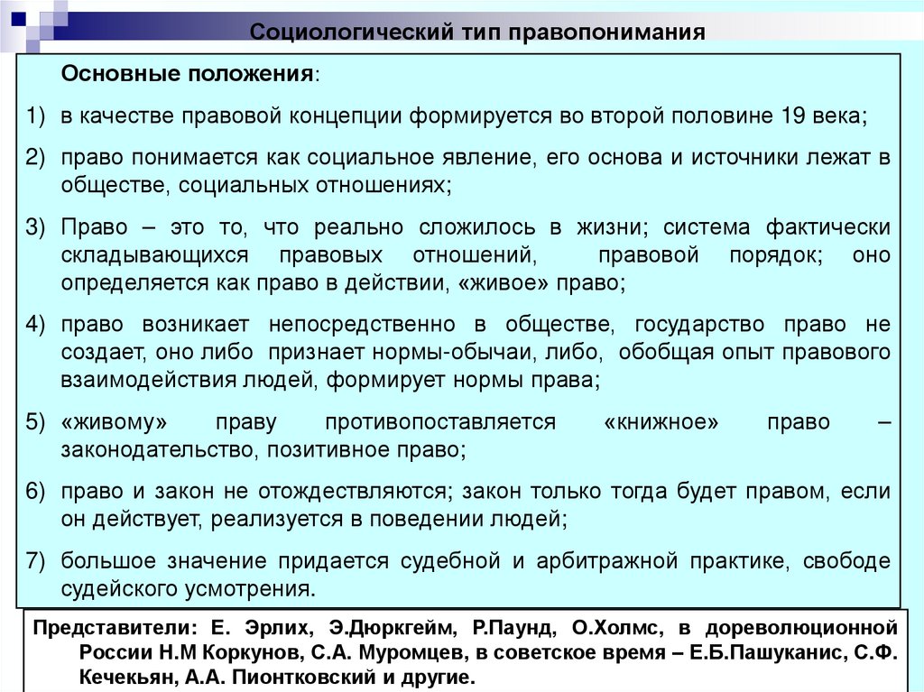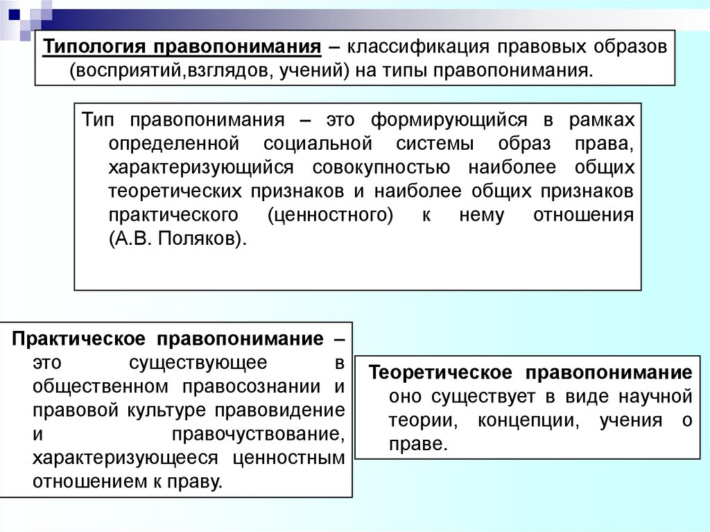 Критерий выделения типов правопонимания ивиды типов правопонимания