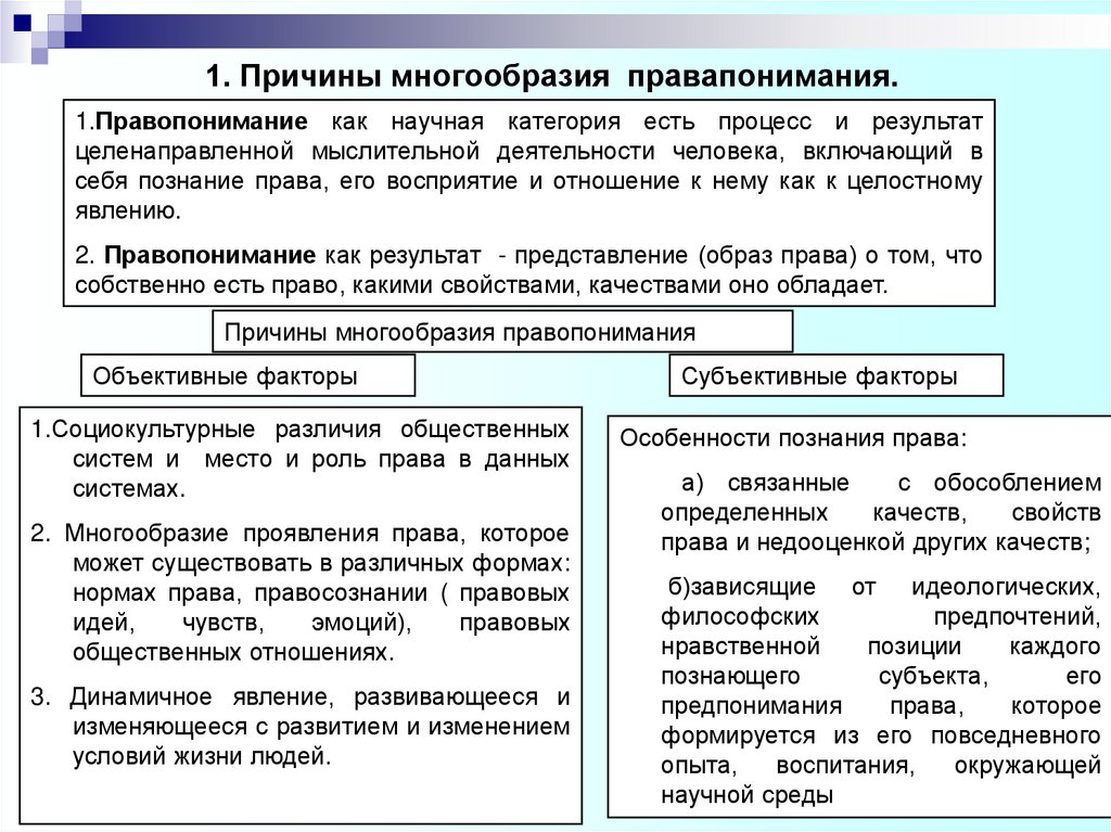 1.Правопонимание как научная категория есть процесс и результатцеленаправленной мыслительной деятельности человека, включающий в