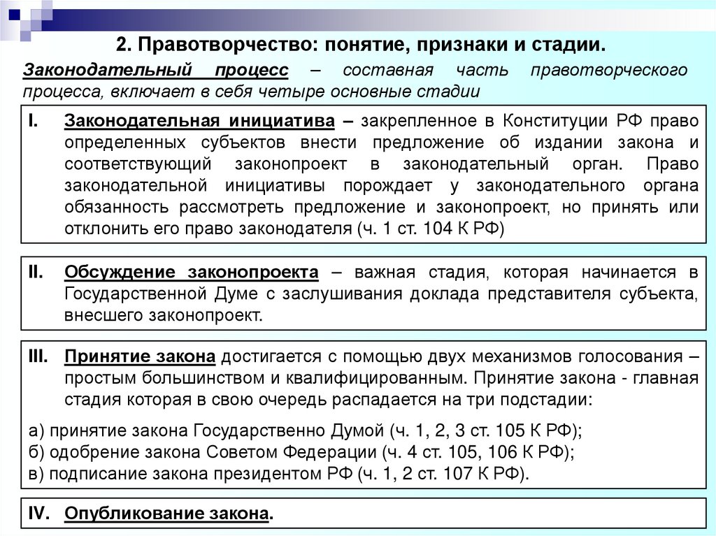 а) принятие закона Государственно Думой (ч. 1, 2, 3 ст. 105 К РФ);