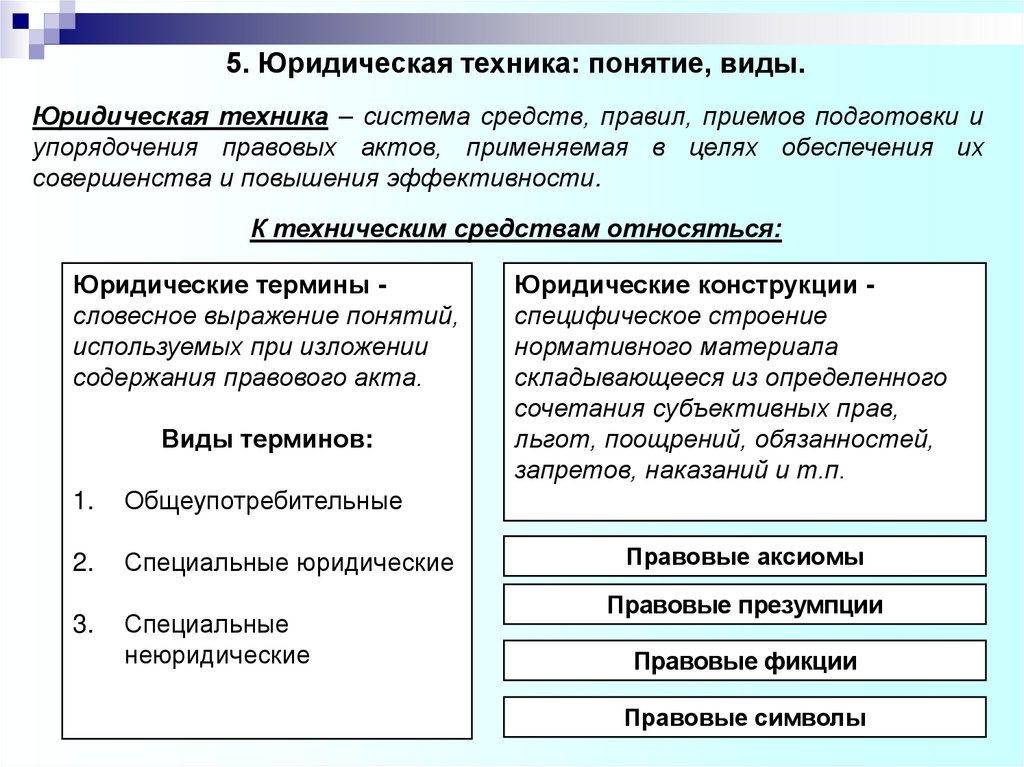 5. Юридическая техника: понятие, виды.К техническим правилам относят: