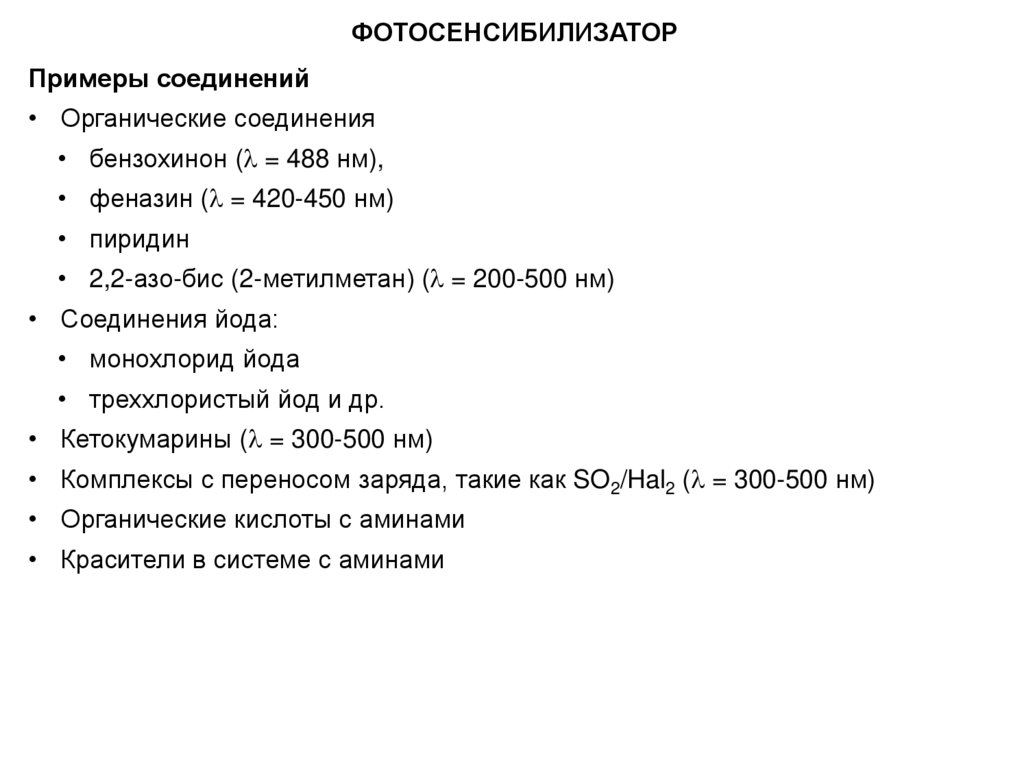 ФОТОСЕНСИБИЛИЗАТОРПримеры соединений