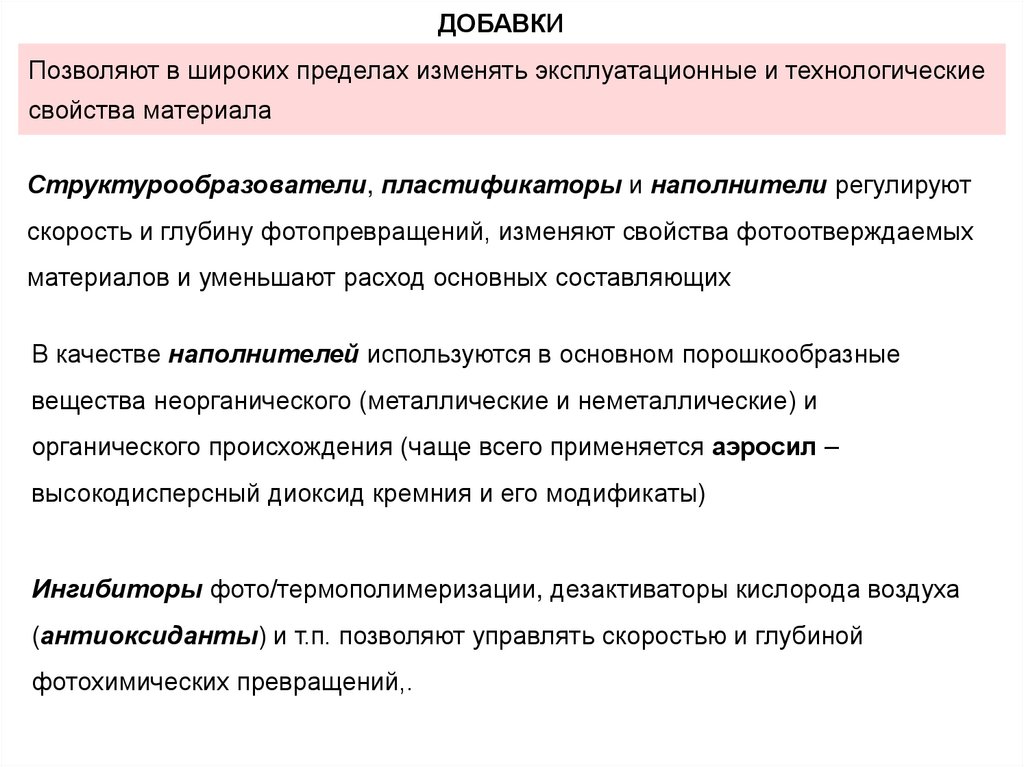 скорость и глубину фотопревращений, изменяют свойства фотоотверждаемых
