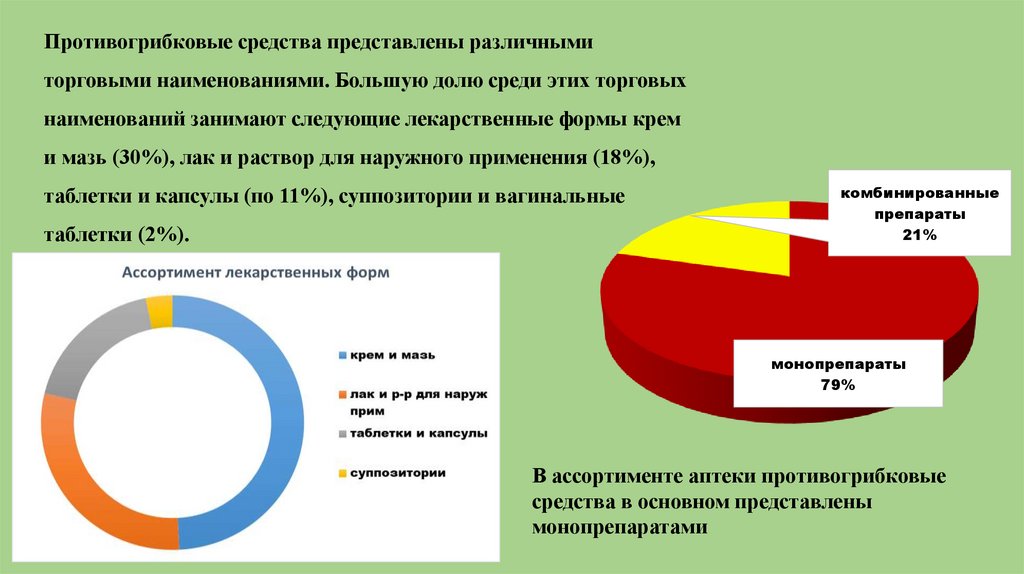 Противогрибковые средства представлены различнымиторговыми наименованиями. Большую долю среди этих торговых
