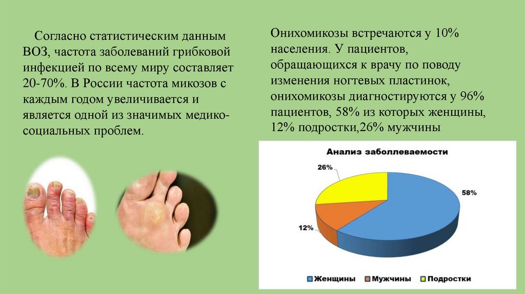 Согласно статистическим даннымВОЗ, частота заболеваний грибковой
