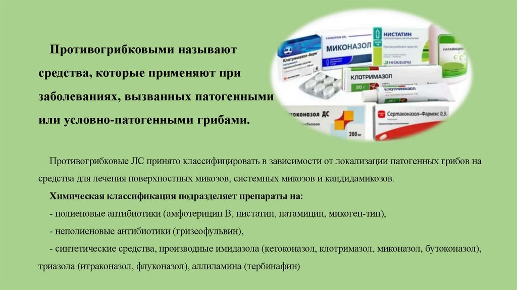 триазола (итраконазол, флуконазол), аллиламина (тербинафин)