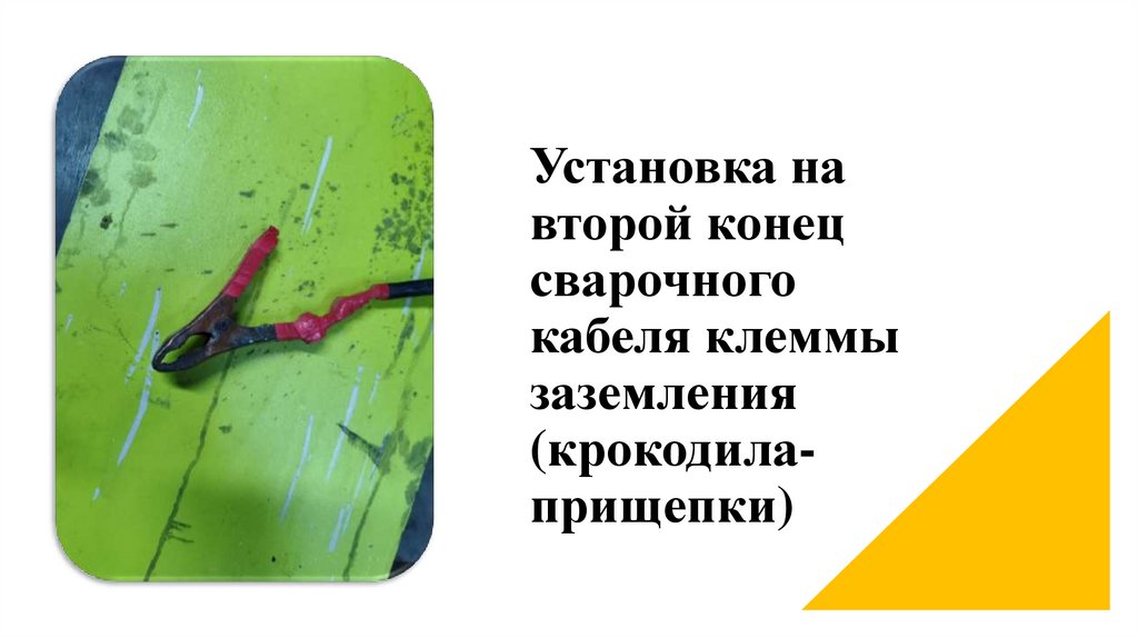 8. Установка на второй конец сварочного кабеля клеммы заземления (крокодила-прищепки)