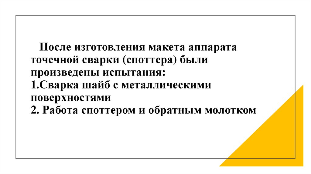 10. После изготовления макета аппарата точечной сварки (споттера) были произведены испытания: 1.Сварка шайб с металлическими
