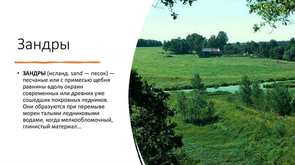 • ЗАНДРЫ (исланд. sand — песок) —песчаные или с примесью щебня