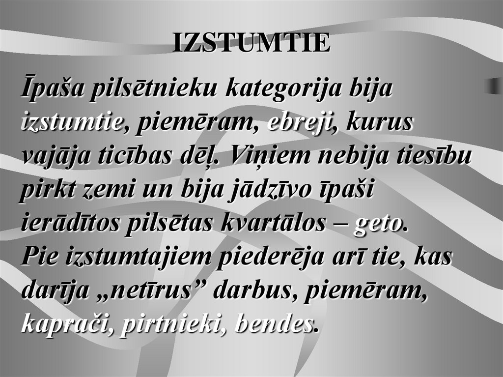 Īpaša pilsētnieku kategorija bijaizstumtie, piemēram, ebreji, kurus