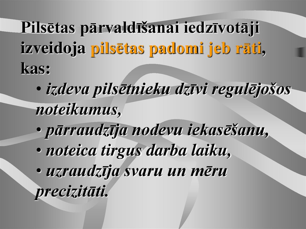 Pilsētas pārvaldīšanai iedzīvotājiizveidoja pilsētas padomi jeb rāti,