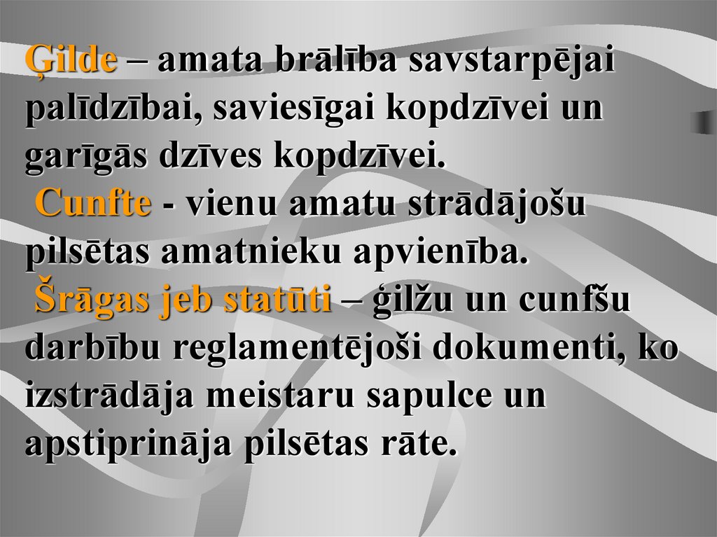 Ģilde – amata brālība savstarpējaipalīdzībai, saviesīgai kopdzīvei un
