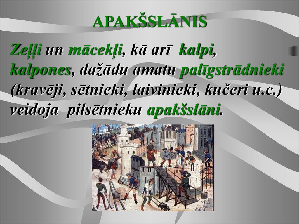 Zeļļi un mācekļi, kā arī kalpi,kalpones, dažādu amatu palīgstrādnieki