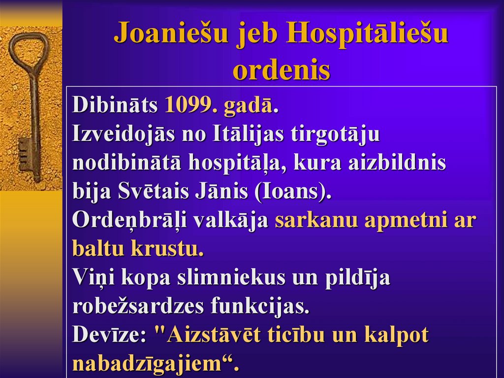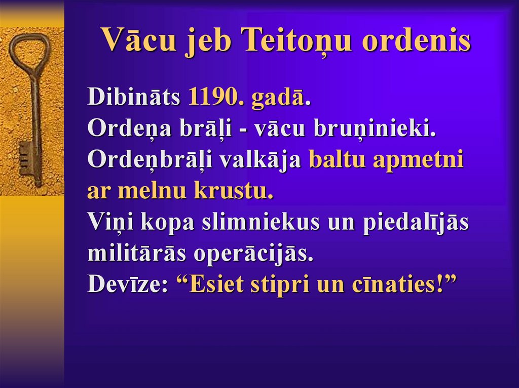 Dibināts 1190. gadā.Ordeņa brāļi - vācu bruņinieki.