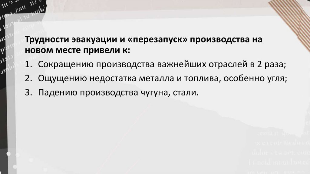 Трудности эвакуации и «перезапуск» производства нановом месте привели к: