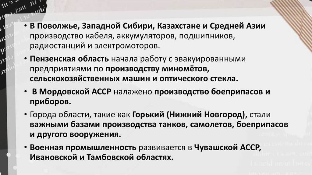 (Поволжье, Урал, Казахстан и т. д.) удалось создать новые