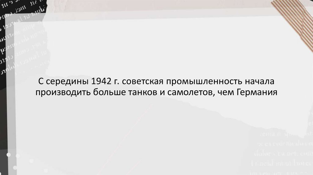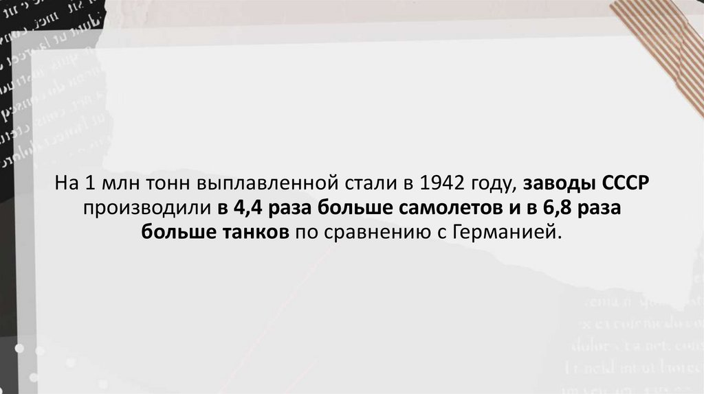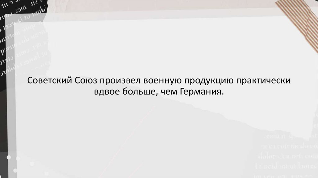 Советский Союз произвел военную продукцию практическивдвое больше, чем Германия.