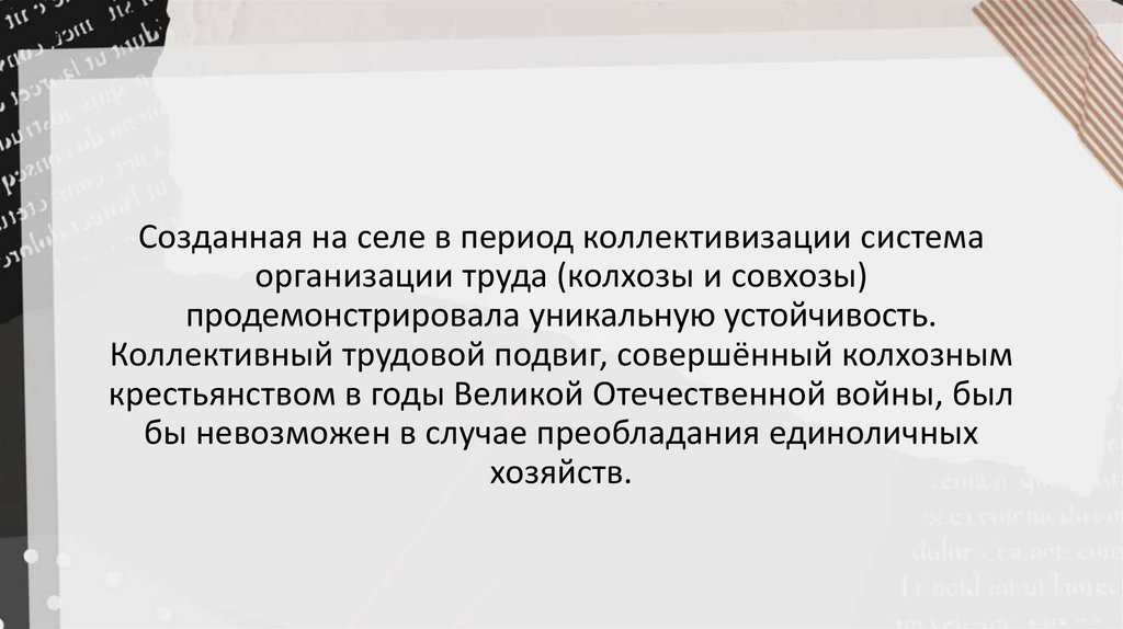 Созданная на селе в период коллективизации системаорганизации труда (колхозы и совхозы)