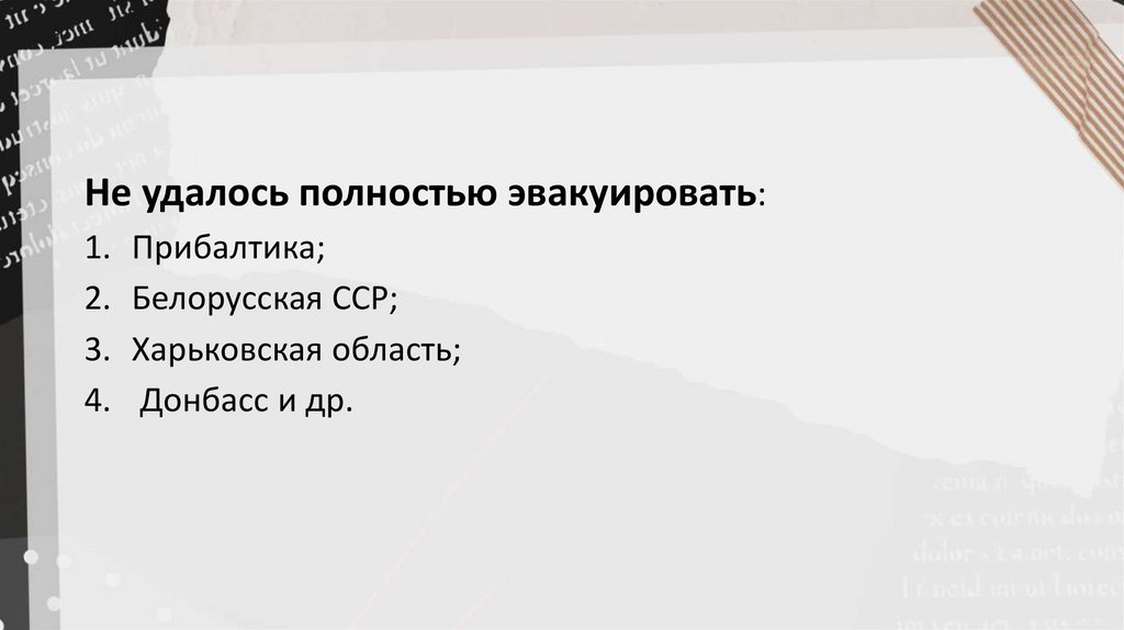 Не удалось полностью эвакуировать:1. Прибалтика;