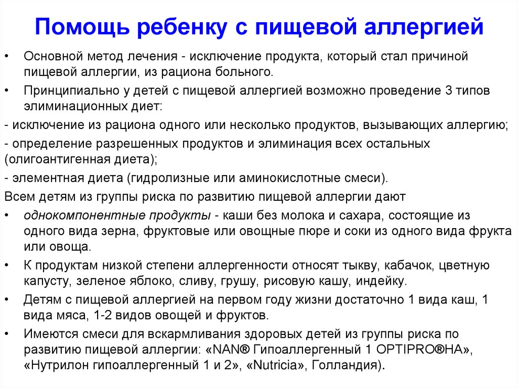 - исключение из рациона одного или несколько продуктов, вызывающих аллергию;