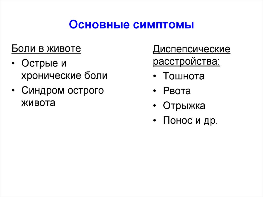 1. Ведущие симптомы при заболеваниях желудочнокишечного тракта (ЖКТ).Причины.