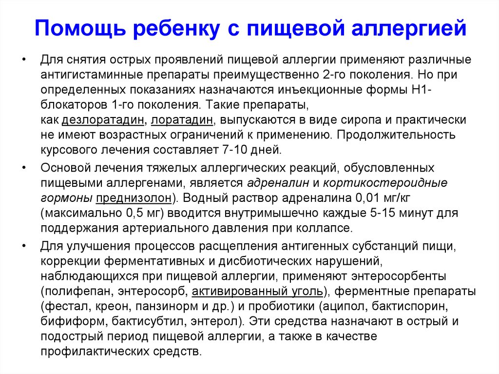 Для снятия острых проявлений пищевой аллергии применяют различные