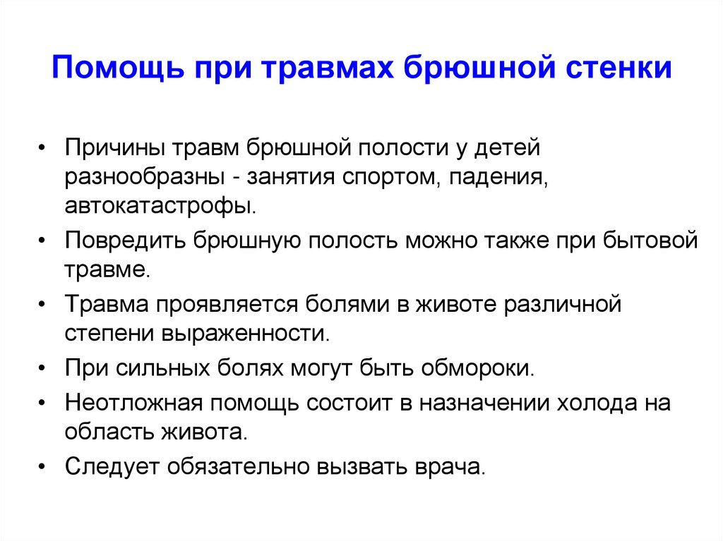 • Причины травм брюшной полости у детейразнообразны - занятия спортом, падения,