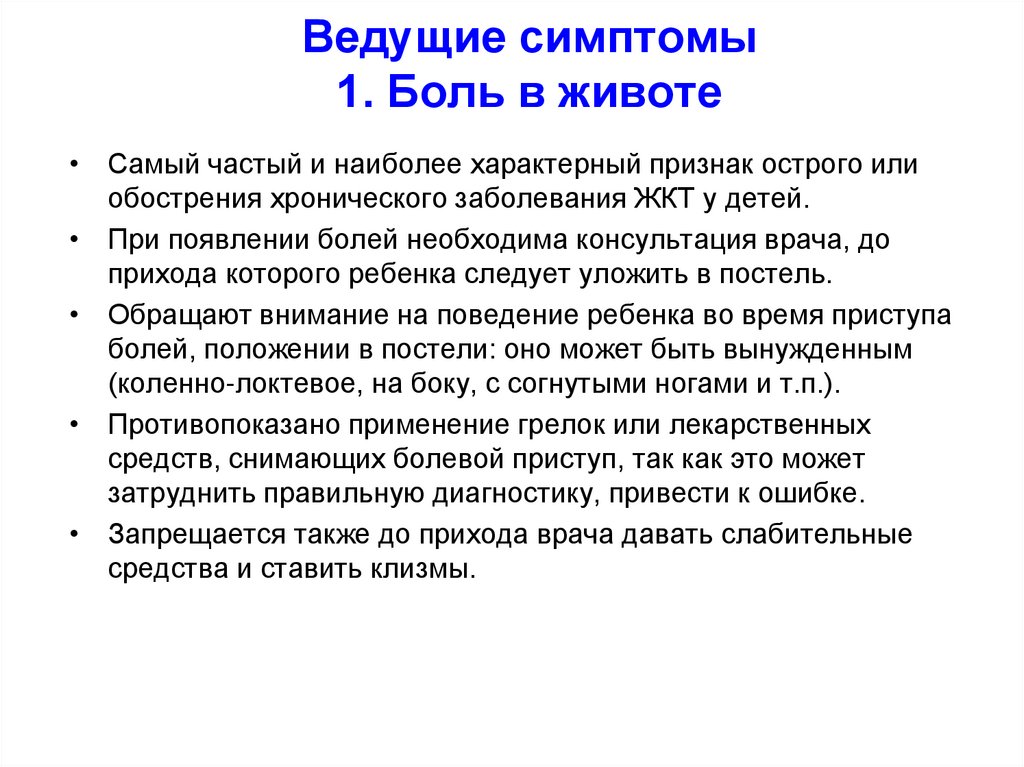 • Самый частый и наиболее характерный признак острого илиобострения хронического заболевания ЖКТ у детей.