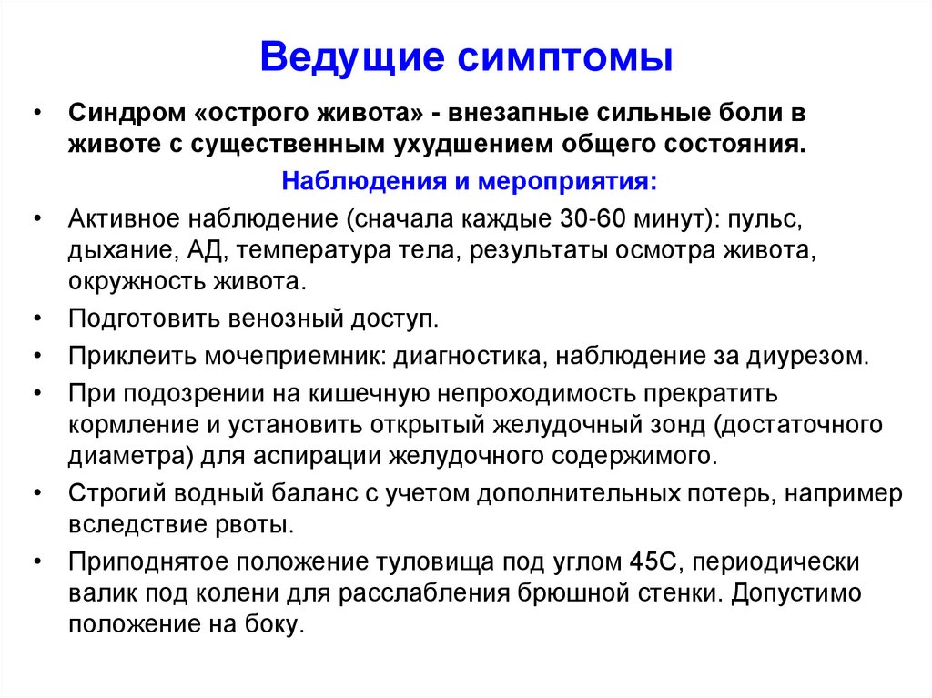 • Синдром «острого живота» - внезапные сильные боли вживоте с существенным ухудшением общего состояния.