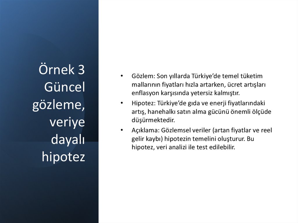 11. Örnek 3 Güncel gözleme, veriye dayalı hipotez