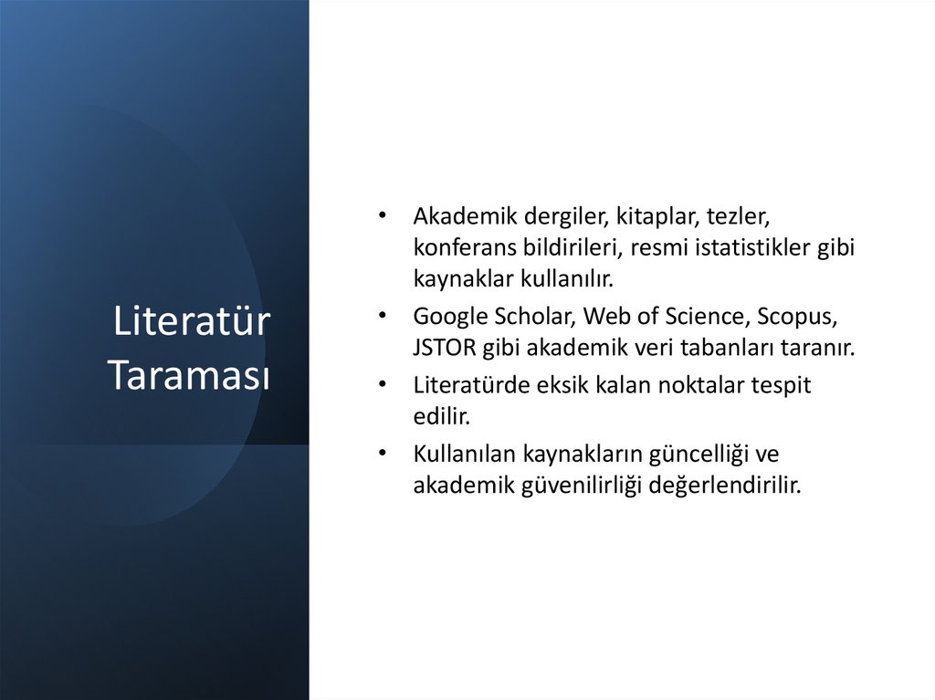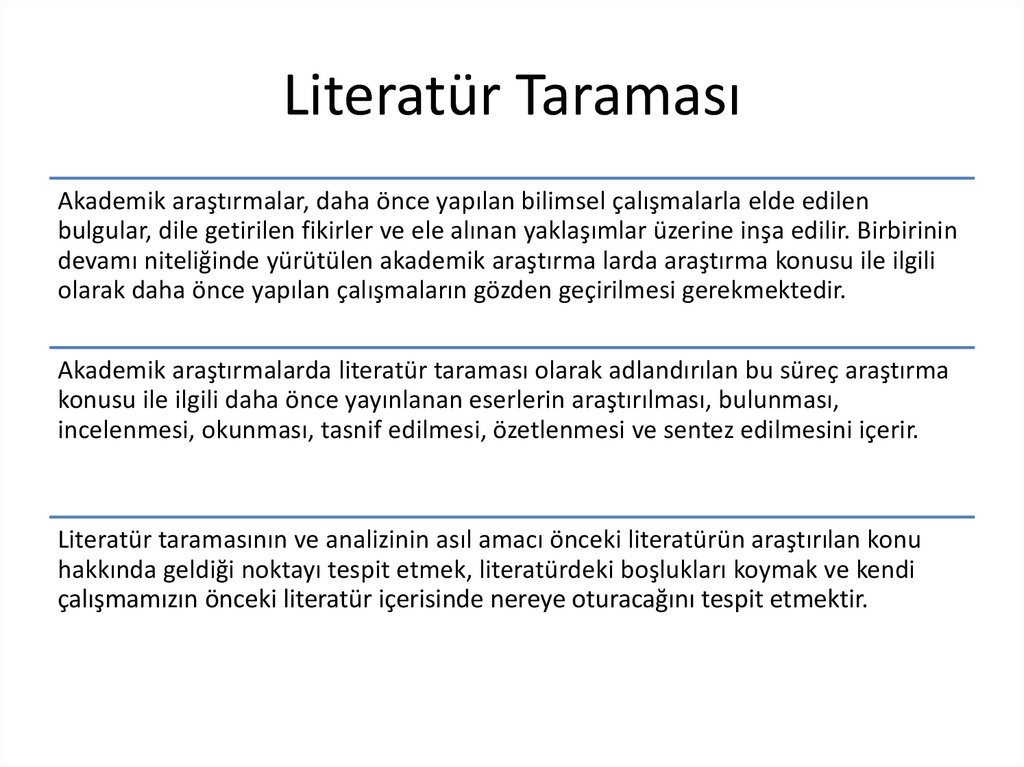 Akademik araştırmalarda literatür taraması olarak adlandırılan bu süreç araştırma