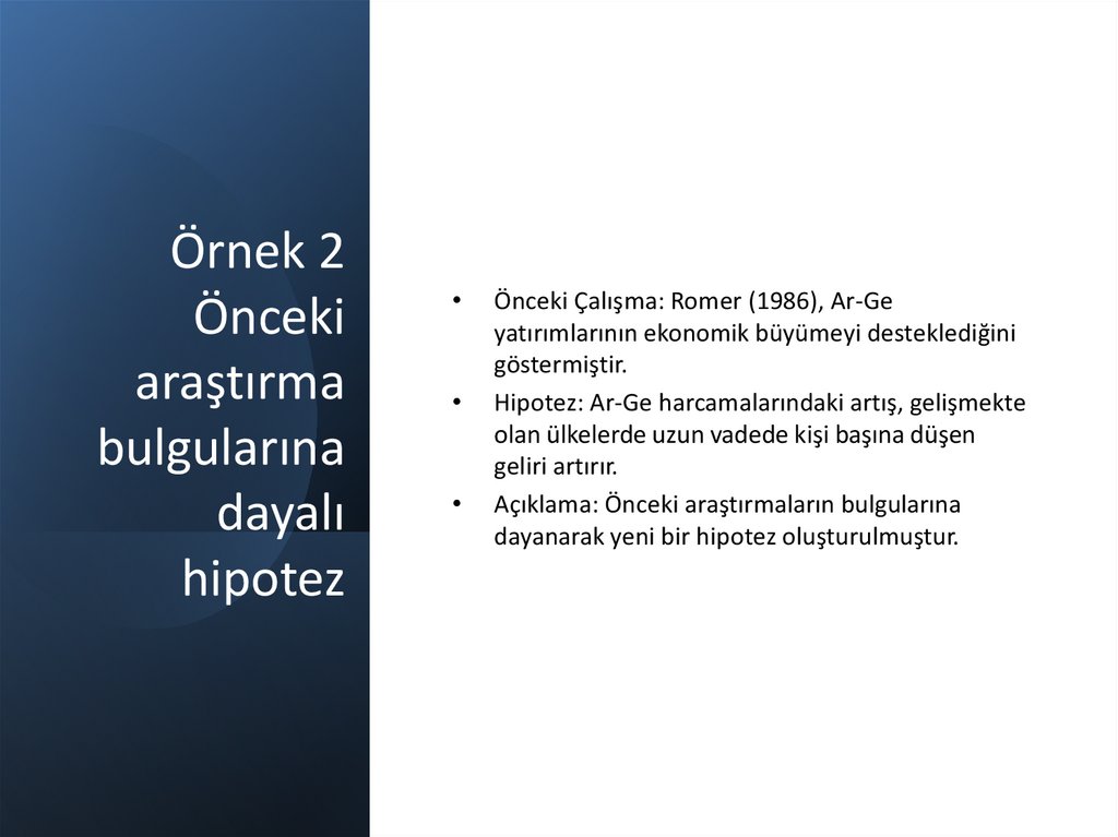 10. Örnek 2 Önceki araştırma bulgularına dayalı hipotez