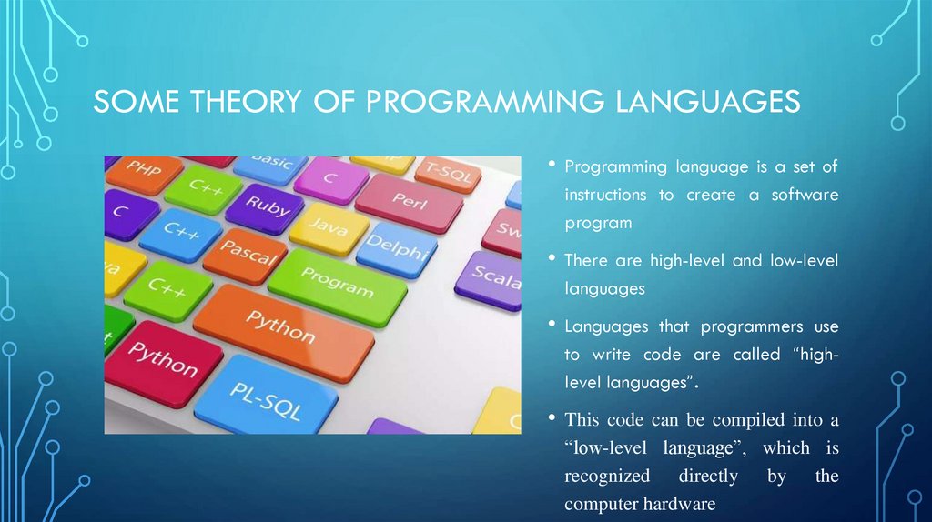 SOME THEORY OF PROGRAMMING LANGUAGES• Programming language is a set of