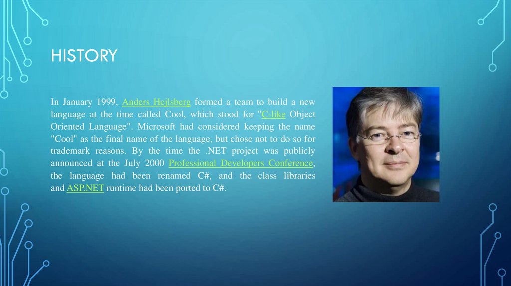 HISTORYIn January 1999, Anders Hejlsberg formed a team to build a new