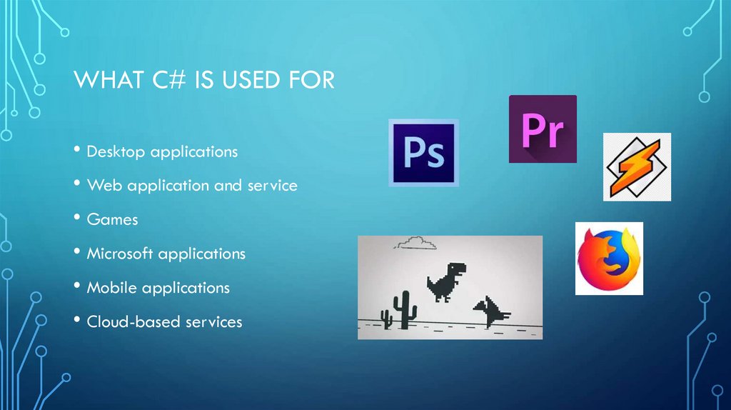 WHAT C# IS USED FOR• Desktop applications