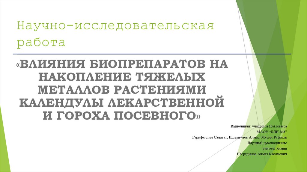 изучение влияния биопрепаратовна накопление тяжелых металлов