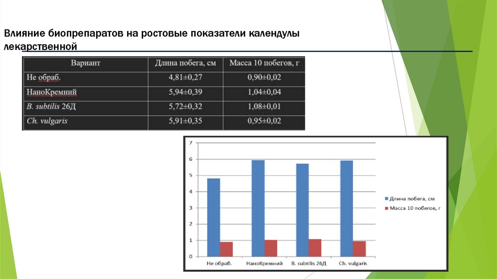 13. Влияние биопрепаратов на ростовые показатели календулы лекарственной