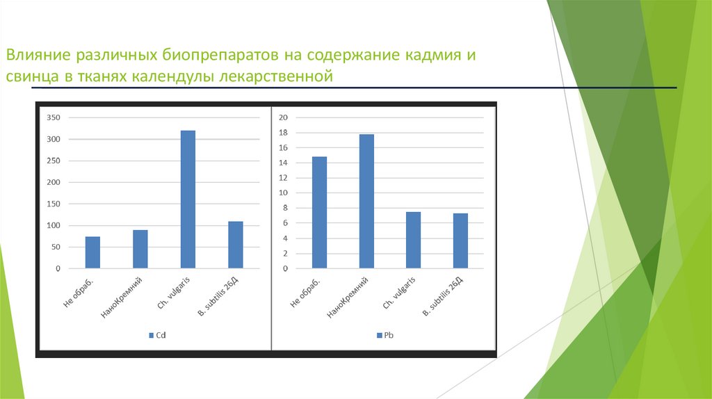 16. Влияние различных биопрепаратов на содержание кадмия и свинца в тканях календулы лекарственной