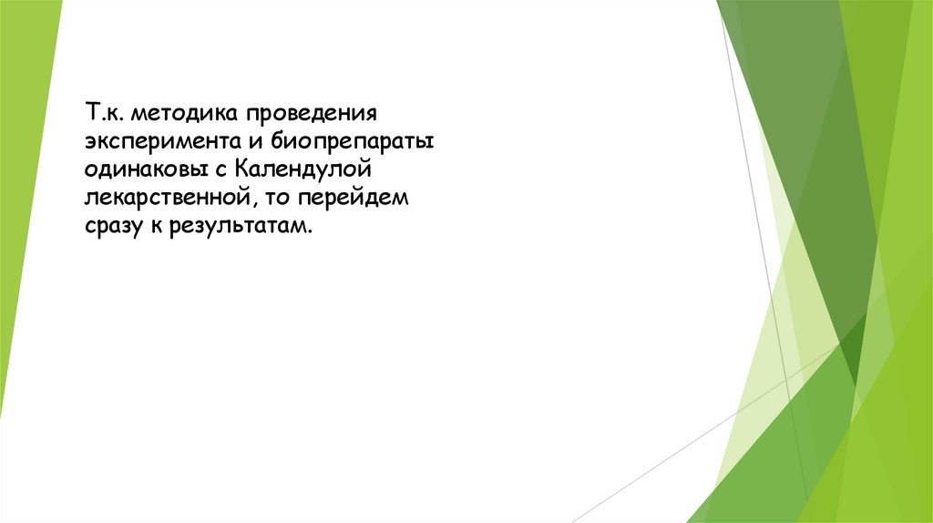 Т.к. методика проведенияэксперимента и биопрепараты