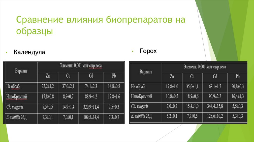 Влияния биопрепаратов на накопление тяжелых металлов растениями календулы лекарственной и гороха посевного