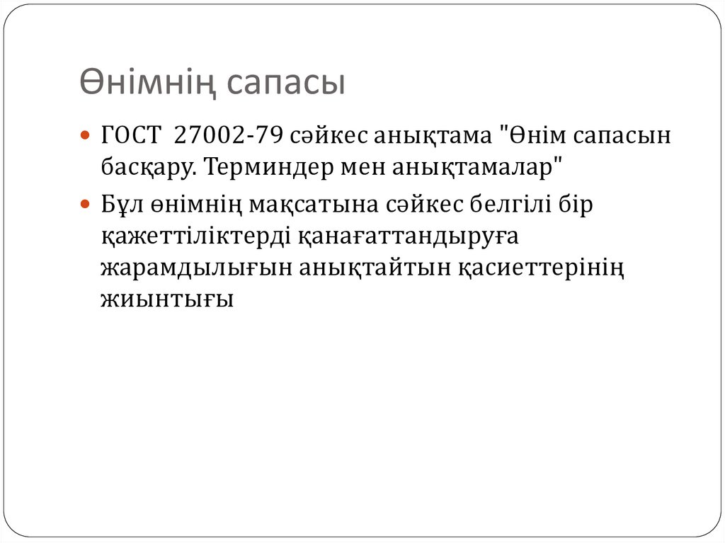 ГОСТ 27002-79 сәйкес анықтама "Өнім сапасынбасқару. Терминдер мен анықтамалар"
