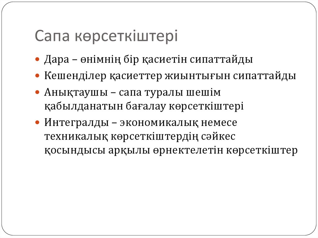 6. Өнім сапасының көрсеткіштер жүйесі