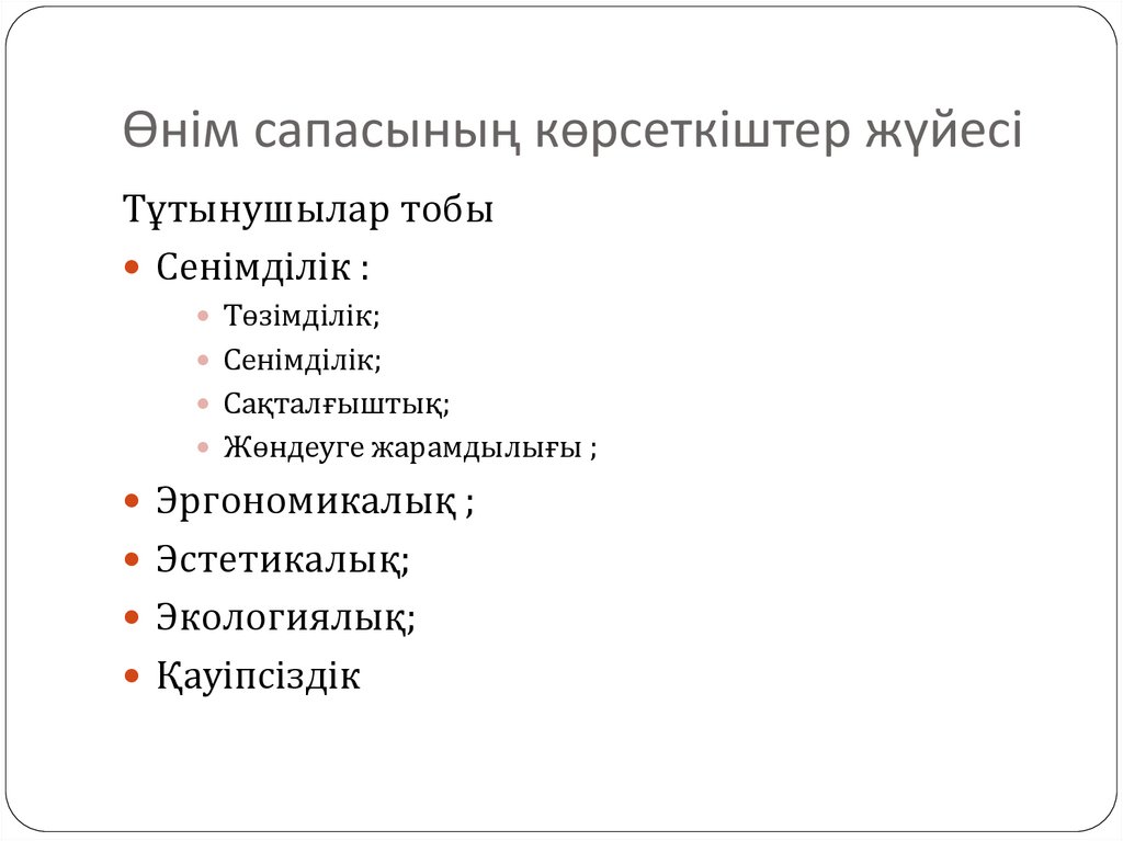 1. Өнімнің сапа көрсеткіштерінің жүйесі