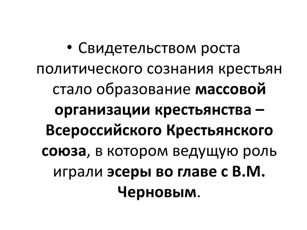 • нерешенность аграрного вопроса требовала ликвидациипомещичьего землевладения и безвозмездного наделения