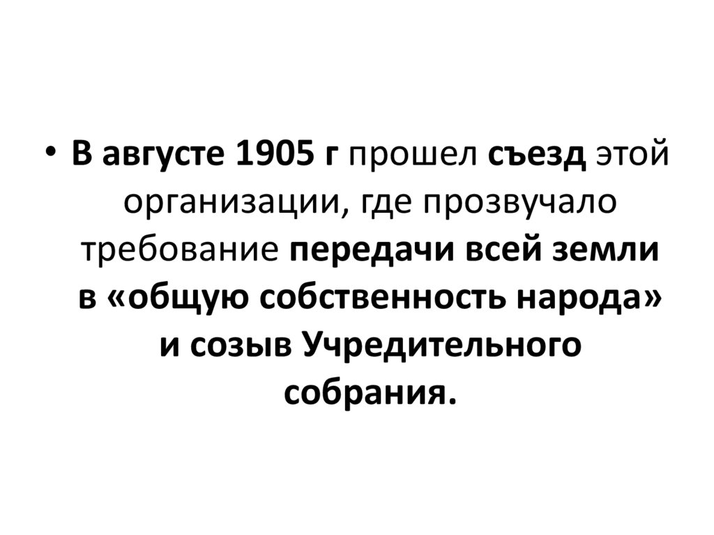 • В августе 1905 г прошел съезд этойорганизации, где прозвучало