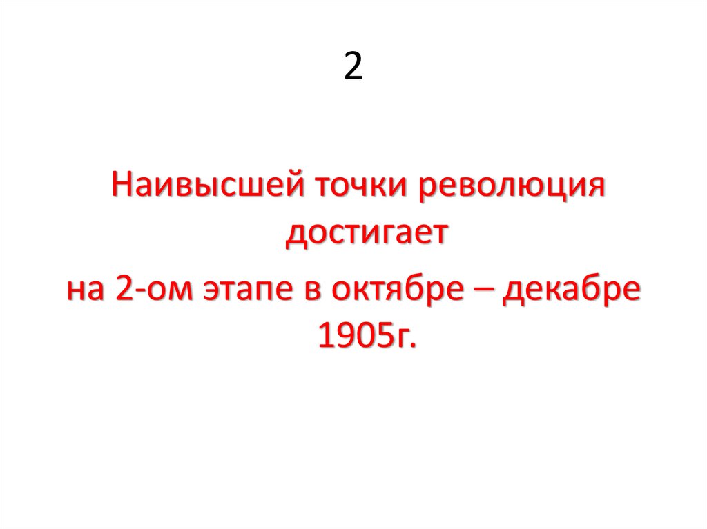 • 2-й этап (октябрь – декабрь 1905 гг.) – высший