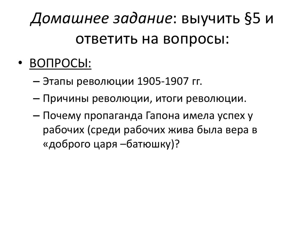 • ВОПРОСЫ:– Этапы революции 1905-1907 гг.