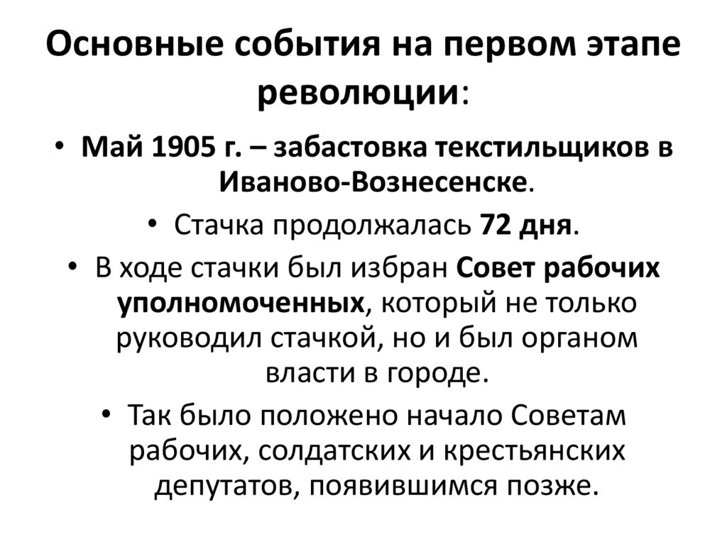 • Май 1905 г. – забастовка текстильщиков вИваново-Вознесенске.
