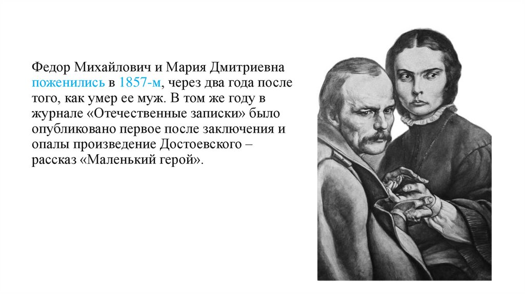Федор Михайлович и Мария Дмитриевнапоженились в 1857-м, через два года после