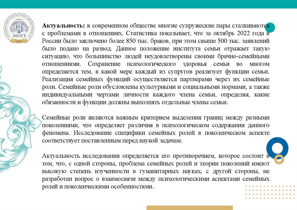 Актуальность: в современном обществе многие супружеские пары сталкиваютсяс проблемами в отношениях. Статистика показывает, что за октябрь 2022 года в