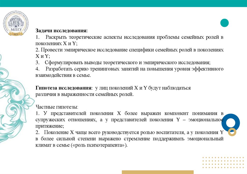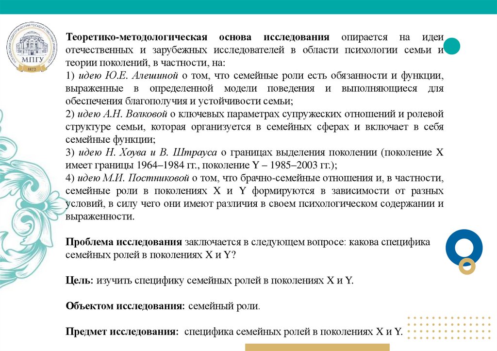 Предмет исследования: специфика семейных ролей в поколениях X и Y.